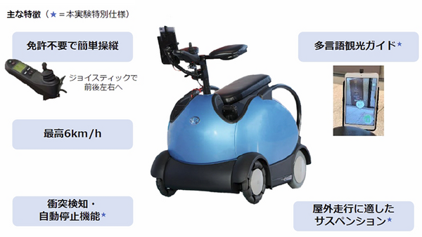 具体的には、「新たなモビリティサービス」や「AR技術を活用した歴史体験サービス」など6つのテーマの課題解決に向け、公募にて選定した民間事業者(パートナー)9社による11種類の社会実験を、10月19日から順次実施しており、同実験テーマのうちの「新たなモビリティサービス」では、複数のモビリティによる回遊支援が11月29日より実施される。
