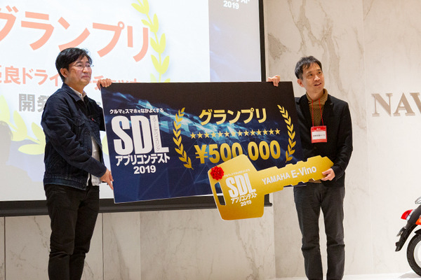 「スマートフォンとクルマをなかよくする」をキャッチフレーズに「SDLアプリコンテスト2019」の最終審査会が11月22日に開催され、決勝に残った10組によるプレゼンテーションの結果、グランプリは「優良ドライバーチェッカー」を開発したチーム名「開発わかばマーク」が受賞しました。賞金50万円と電動スクーター「ヤマハ E-Vino」が贈呈されました。
