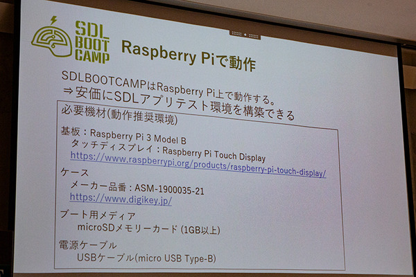 また、トヨタ自動車からはRaspberry Piで動作するSDL開発キット「SDLBOOTCAMP」が紹介された。カローラのようなSDL対応車種がなくてもSDLアプリや連携したシステムの開発が可能になる。