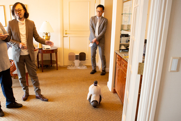 昨年の初お披露目のときと比べ、人に「なつく」点にも改良を重ね、時間の経過と共に懐いてくれるプロセスも細かく設定されている。更にはaiboも認識できるように改良した。