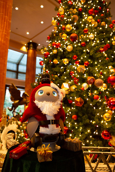 ウェスティンホテル東京に入るとロビーには巨大なクリスマスツリーが・・あ、LOVOT!