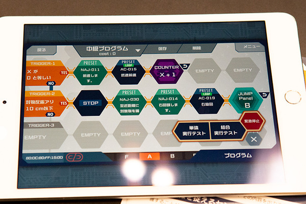 そこで使いたいのが「ブロックプログラミング」だ。「どのくらいの速度で歩く」「どのくらいの角度で向きを変える」など、ロボットが比較的安全に動作するアクションがあらかじめ用意されているので、それを組み合わせてロボットの動きを制御する方法だ。
