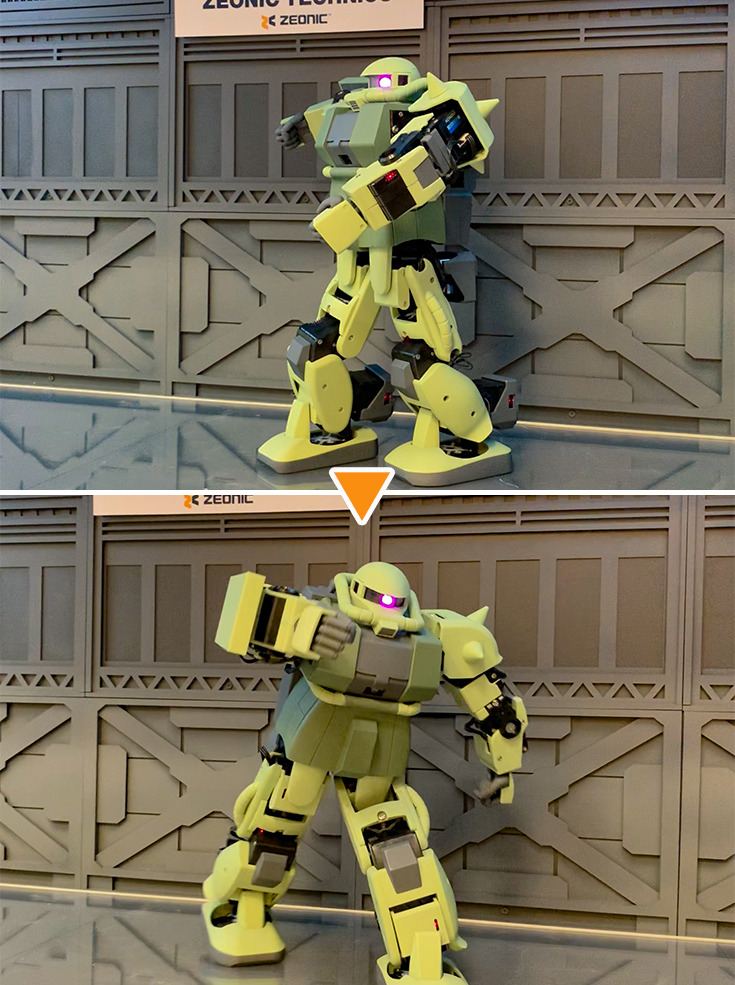 「ZEONIC TECHNICS」のミニチュアザクがどのように動くのか、起き上がる様子とバトルアクションがこの動画!