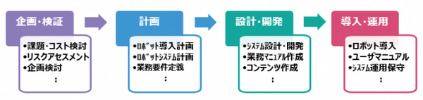 「ロボット導入コンサルティングサービス」を活用することで、サービスロボット導入を検討する企業は、ロボットの選定やコスト検討といった計画フェーズから実際に導入するまでの一連の流れを、TISの支援のもとでスムーズに進行することが可能になる。