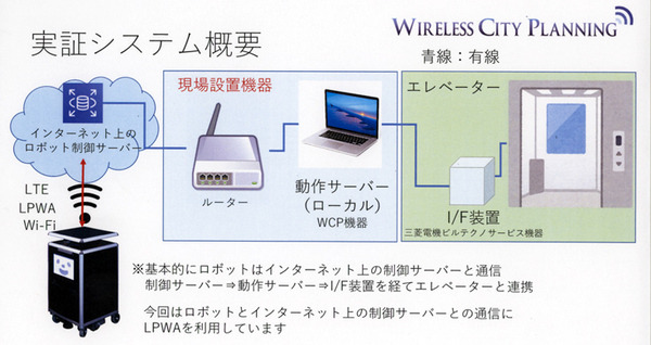 Wireless City Planning(以下、WCP)は、総務省の「令和元年度予算IoTの安心・安全かつ適正な利用環境の構築(IoT利用環境の適正な運用及び整備等に資するガイドライン等策定)に係る委託先」に選定されている。その施策の中、パートナー企業と協力し、東京都千代田区と神奈川県鎌倉市で「自律走行ロボットエレベーター連携実証事業」を実施している。