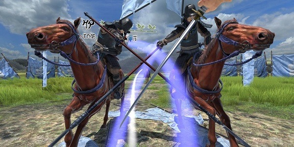 青いヘッドマウントディスプレイを装着し、コントローラを持つ手を見ると自分の手には日本刀が。プレイヤーは若き日の可児才蔵となり、腕試しとして明智隊、明智光秀と戦う。