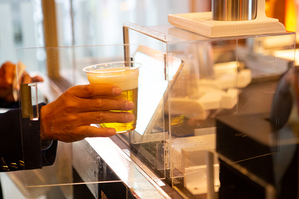 ビールはロボットがビールサーバにコップをおいて注ぐ作業のみなのでシンプル。40秒でできあがる