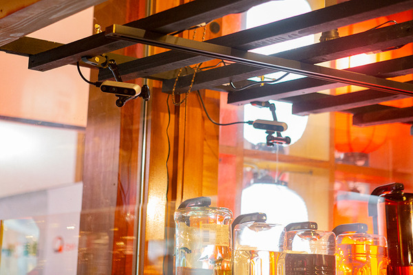 カメラの映像からゾーニングをして、人の移動を判別する。来店客がロボットに近づいてくれば「いらっしゃいませ」、離れていく場合は帰る人と判断して「もう一杯飲んでいきませんか」という声掛けも可能だ。また、性別や年齢層に合わせておすすめのお酒の種類を変えることもできる。