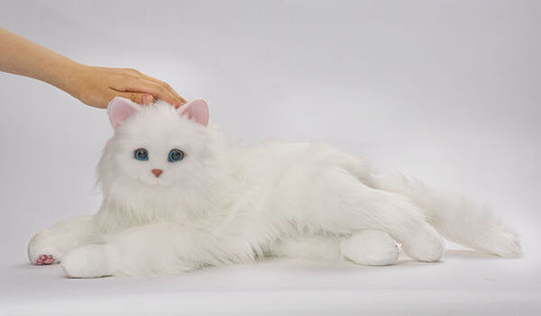 「あまえんぼうねこちゃん」は、本物みたいな「尻尾」の動きと「鳴き声」で感情表現が豊かな、愛らしい猫型ペットロボット。ふわふわな抱き心地で本物の猫の鳴き声も多数収録。鳴き声・尻尾の動き・感情表現は全100通り以上。