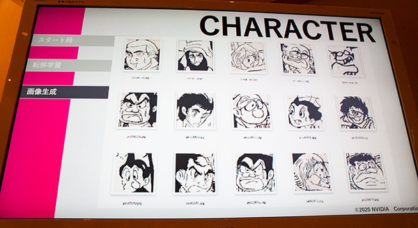 人間の顔生成システムに手塚氏の漫画のキャラクターを追加学習する「転移学習」を行うと、成果がみるみる向上。その中から「ぱいどん」のイメージにぴったりの顔を採用した。