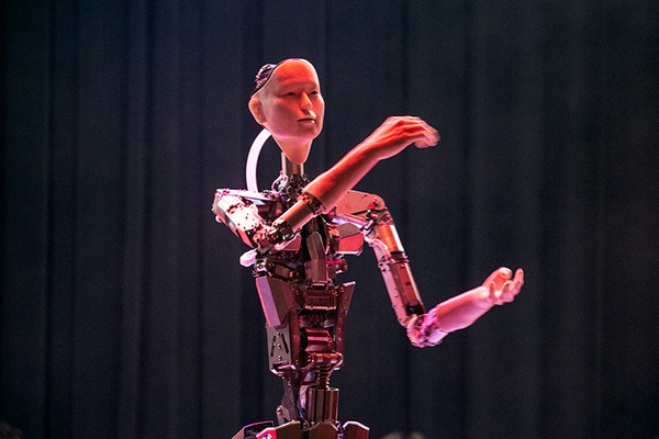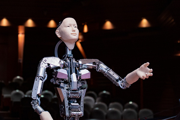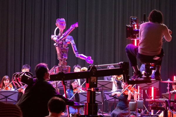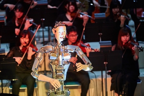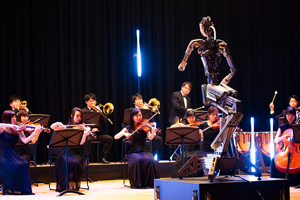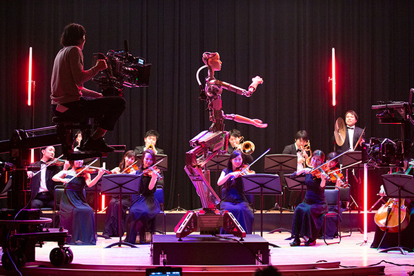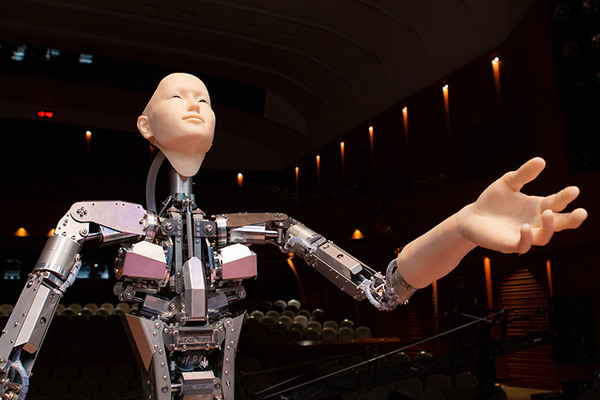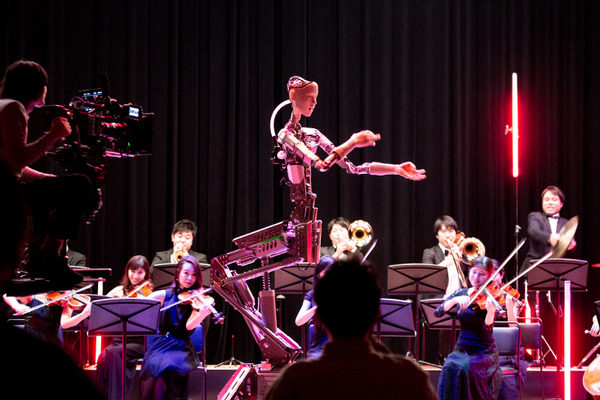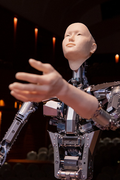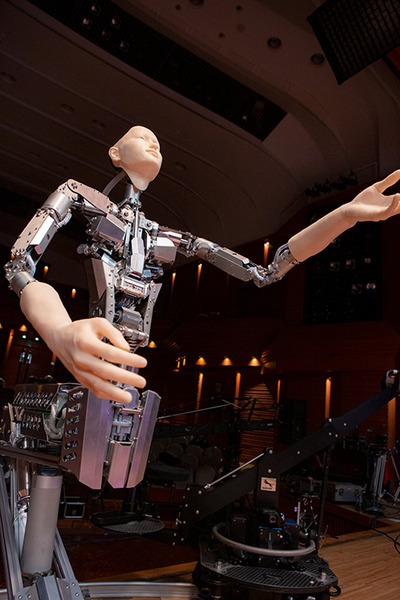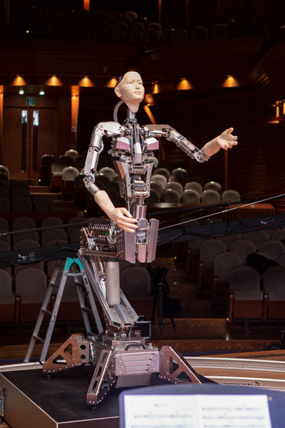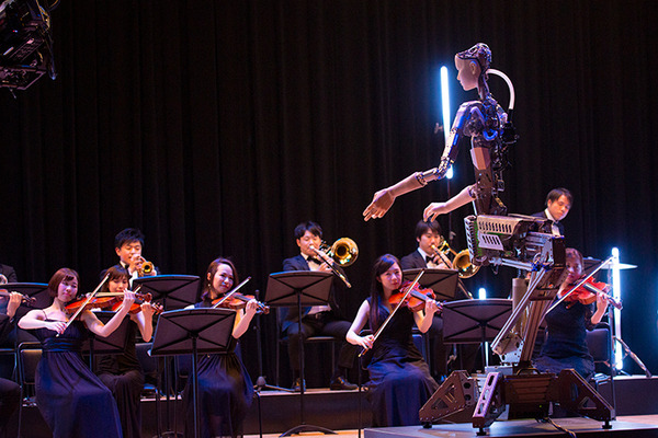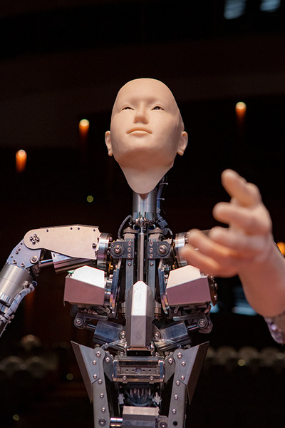 オーケストラを指揮するのはロボット技術と人工生命の最先端をいく機械人間「オルタ3」。音楽家の渋谷慶一郎氏による「アンドロイド・オペラ Scary Beauty」を指揮することでも知られている。
