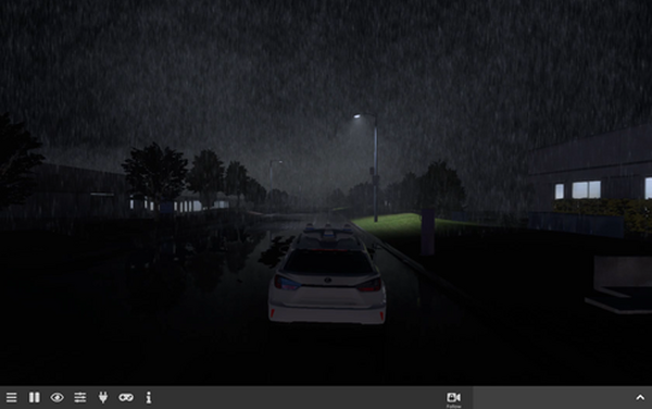 夜間に雨と霧が発生している環境下で、信号機を認識する。信号の状況に応じて、停止線の手前0.5mを目標に停車して、青信号になってから3秒以内に発車する。