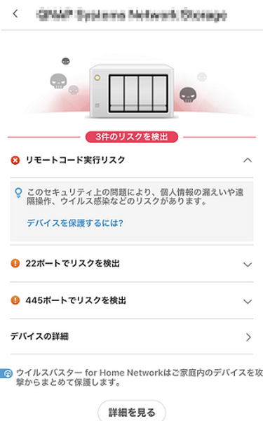 | 備考 | iOS版ではOSの仕様による実装方式の違いにより、Android版と比較して機器認識精度および、検知できる脆弱性の数が制限されている。 同アプリでスキャン対象とするネットワークは家庭内ネットワークに限る。また、利用にはインターネット接続が必要。 記載内容は現時点のものであり、今後、価格や仕様の変更、バージョンアップ等により、内容の全部もしくは一部に変更が生じる可能性がある。 |