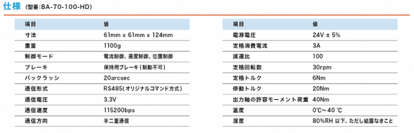 ■「Buildit Actuator(型番:BA-70-100-HD)」仕様
