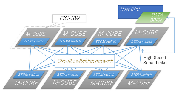 同社が受注・販売するFPGAコンピューティングプラットフォーム M-CUBEは、複数のM-CUBEをつないで、単一のFPGAであるかのように扱うことができるFiCに適合しており、以下の特長により低コストかつ高性能なシステムを実現できる。