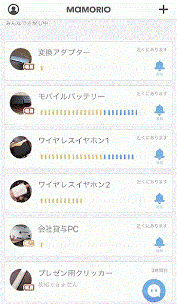 「持ち物チェック」を用いることでトップ画面に現れるレベルメーター表示により、リアルタイムにMAMORIOが発信している電波を確認し、持ち物が近くにあるかを確認することができる。同機能は新開発のリアルタイム・ビーコンモニタリングをMAMORIOアプリに実装し、常に数秒間隔で電波を安定して長期に亘り発信出来るMAMORIO端末の特性と、複数のMAMORIOを所持している人に最適な一覧性の高いユーザーインターフェースを組み合わせたことによって実現した。