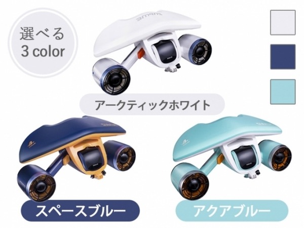発売以来、ダイビングを楽しむユーザーを中心に手軽に楽しめる最新ウォーターアクティビティとして、多くのユーザーに楽しまれている「WHITESHARK MIX」。昨年には、高性能な上級モデル「Seabow」(シーボウ)と、子どもやスイミング初心者でも楽しめる電動ビート板「Swii」(スウィー)」も発売された。今回、より多くのユーザーに水中スクーターを楽しんでもらうために、大幅な値下げとなる価格改定を実現した。3色展開ともに価格改定の対象となる。