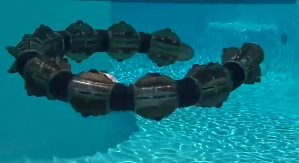 同社の新ヘビ型マニピュレータ「FloatArm」(フロート・アーム)は狭隘スペースの遠隔作業用に開発された全長5メートルのロボット。重量は25kg。ヘビのように細長くしなやかな動作を可能にする独自技術のモーションコントロールにより、狭く見通しの悪い環境下でも高精度な検査を実施し、設備データを取得することができる。AIデータプラットフォーム「HiBox」と連携させることでロボットが収集したビッグデータにAIを適用し、故障や欠陥、不具合の可能性を予測することも可能。また、インフラ設備内で稼働中のシステムとの統合も容易のため、多様なアプリケーション環境に対応できる。