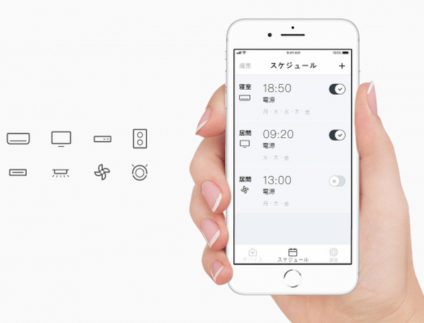 スケジュール機能で家電を自動操作
