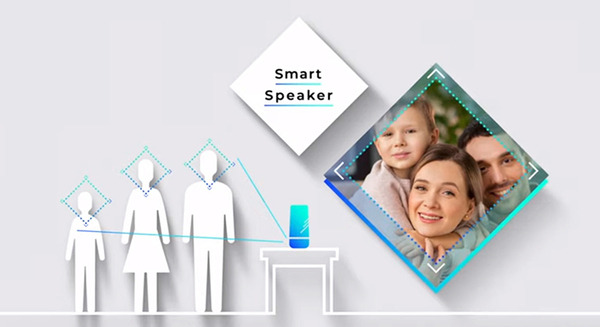 また、新しい使い方として、同社が公開した動画によれば、スマートスピーカーにこのセンサーを搭載することによって、スマートスピーカーは誰が話しかけているのかを顔認識機能で判断できるようになる。