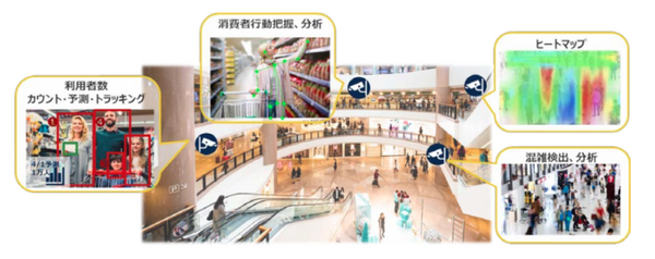 ユーザーは任意のAIモデルをメモリーに書き込み、使用環境や条件に合わせて書き換え、アップデートすることが可能。例えば、IMX500を採用した複数台のカメラを店舗に設置した場合、1種類のカメラで、設置位置、状況、時間など目的や用途に応じて使い分けることができる。入り口であれば入店者のカウント、棚であれば商品の欠品検知、天井であれば来店者のヒートマップ(人が多く集まる場所の検知)などの複数の用途に活用できる。また、これまでヒートマップの検出に使用していたAIモデルを消費者行動を把握するために使用するAIモデルなどに書き換えることも可能だ。