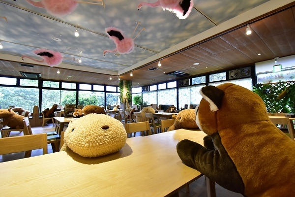伊豆シャボテン動物公園の「森のどうぶつレストランGIBBONTEI(ギボン亭)」では、この度、新型コロナウィルス感染防止対策の一環として、食事中の利用者同士が充分な距離を保てるようテーブルのレイアウトを変更、ぬいぐるみたちも“席替え”し、カピバラやレッサーパンダと“相席”することで自然とソーシャルディスタンスが確保できるように工夫した。なお、園内で人々が間隔をあける距離は「カピバラ2頭分」としている。