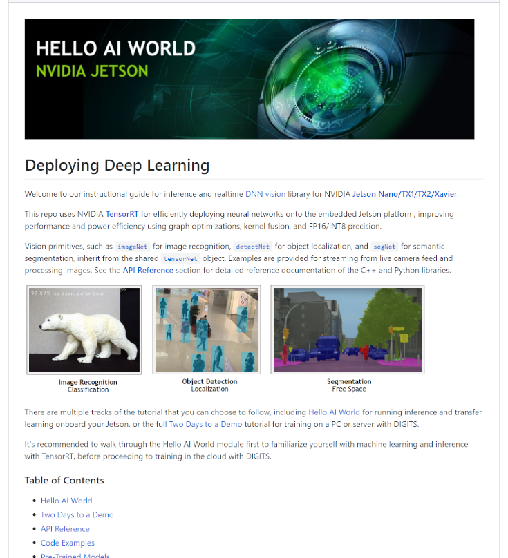 HELLO AI WORLD の中ではImageNet, DetectNet, SegNetなどの体験ステップがあります。ステップ通り試していただくとより理解が深まると思いますが、過去記事でHELLO AI WORLDを紹介した記事があるのでこちらも参考にしてみてください。