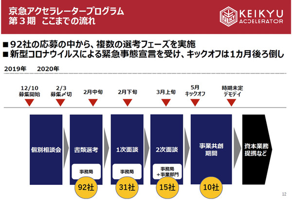 京浜急行電鉄(京急)は、スタートアップとのオープンイノベーションにより新規事業の創出を目指す「KEIKYU ACCELERATOR PROGRAM」(京急アクセラレータープログラム)を実施している。ベンチャー企業の支援で知られるサムライインキュベートと共同のプログラムで、今回は第3期を迎える。第3期の傘下企業を発表するオンライン記者発表会を開催した。