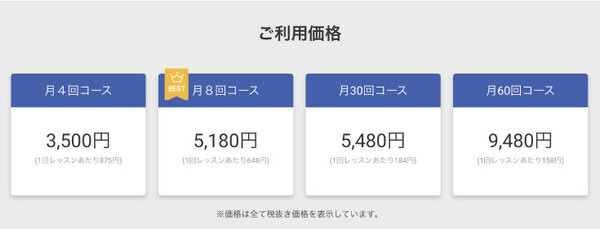 オンライン英会話受講回数によって週1回から月60回コースまで。