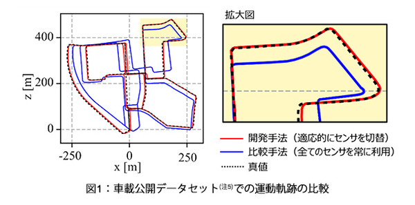 なお、公開されているデータセットを用いて検証したところ、カメラと慣性センサから得られるデータをもとに推定する従来手法に比べて誤差を40%低減し、カメラのみを用いた場合との比較では誤差を82%低減し、真値の軌跡とほぼ一致する結果を確認したという。