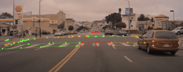 このアプローチの利点は画像の輪郭をセグメント化する代わりに、別の車線の交差点進入点および退出点を見分けることができる点。また、オクルージョン(遮蔽)や部分的なオクルージョンに対して堅牢であり、交差点構造の塗装された線も推定される線も両方予測できる。さらに、画像の交差点の主な点を、交差点の走行のための進路につなげることもできるという。例えば、交差点の進入点と脱出点をつなげることによって、エゴカーの動きを表す進路や軌道の予測が可能になる。
