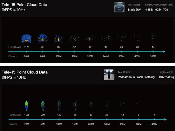 Livoxはこれまでに、HorizonやMidシリーズなど検知範囲260mクラスのLiDARを販売している。他のメーカーでも検知範囲はおおよそ250mほどだ。これは高速道路などで乗用車などが対面しあうシーンであっても1秒間に進むことができる距離が150m程(互いに250km/hで走っていた場合)しかないためだろう。