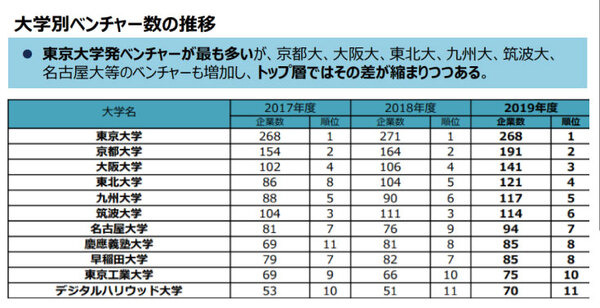 これは、東京大学がこれまで、長期に渡って大学発ベンチャーを支援するエコシステムを整えてきた成果だ。