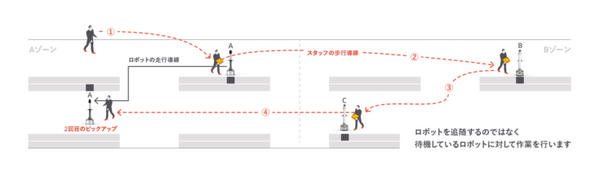 ・ゾーンピッキング(下図)の推奨により、ソーシャルディスタンスの確保に寄与。