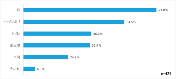 Q2:「増えた」「どちらかというと増えた」と回答した方にお伺いします。どこの掃除の頻度が増加しましたか。