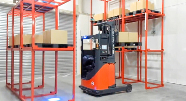 オンライン説明会では「CarriRo Fork リーチタイプ」が倉庫の商品棚からパレットを移動する様子、取り出したパレットを自動運転型の台車ロボット「CarriRo AD」へと移送、「CarriRo AD」が指定されたルートに沿って運ぶ連携デモが公開された。