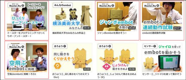 「Master Nu」シリーズの動画もembottersのホームページの「いろいろな遊び方」で見ることができます。