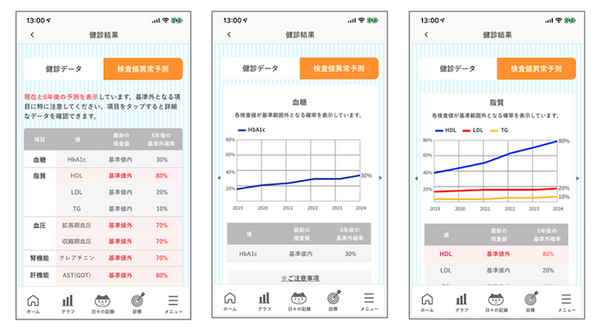 SOMPOひまわり生命保険は本日からサービスを開始する「Linkx 健康トライ」の機能の1つとして同サービスを採用。契約者は自身の予測結果をスマートフォンのアプリから参照し、日々の健康改善活動に役立てることができる。