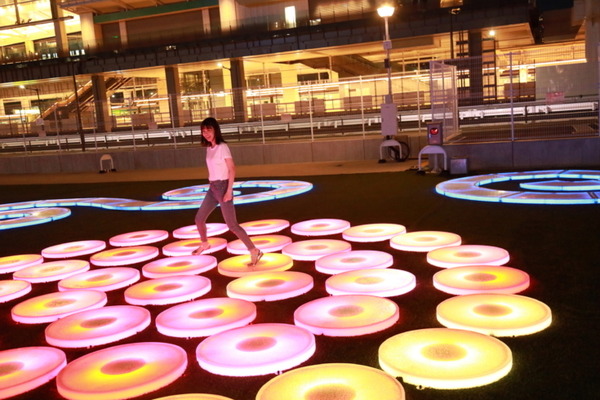 日本初上陸の屋外インスタレーション。ニューヨークに拠点を置く、没入感のあるインタラクティブなアート作品で著名な、Jen Lewin Studioo(ジェン・ルーウィン・スタジ)を代表する作品。日没以降に点灯し、踏むと色が変わる仕掛け。光と色のファンタスティックな幻想空間が楽しめる。
