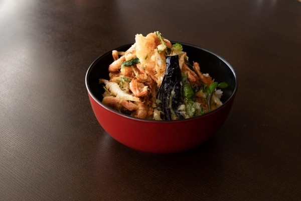「甘えびと白えびの紅白かき揚げ天丼」(サラダ、お新香、味噌汁付き)/1,200円(税込み)