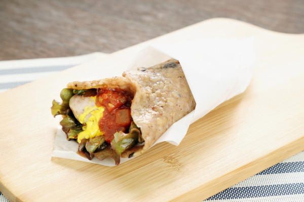 酵素玄米をタコスの様なラップ状にしたaciao米は、安心安全でおいしいファーストフード。グルテンフリーであり中の具材を変えればベジタリアン、ハラール、肉好きな方など多様な要望に対応可能で豊富なメニュー展開をしている。期間中、店頭販売用は無肥料無農薬の山形県産「亀の尾」を使用したaciao米、持ち帰り用は有機肥料・無農薬の千葉県産のお米を使用したaciao米で提供。