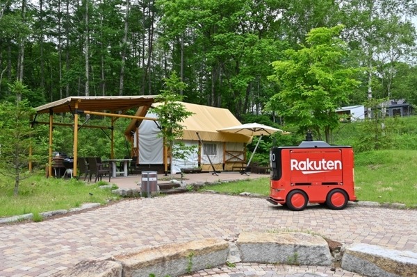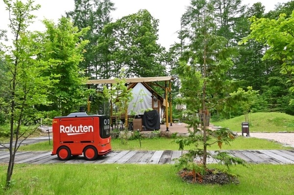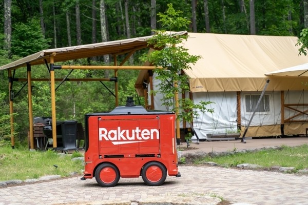 これまでは施設のスタッフが注文ごとに各テントヴィラへ配送を行っていたが、自動走行ロボットが商品を配送することにより、非対面での受け渡しや配送時の省人化と効率化を実現。なお、東急リゾーツ&ステイが運営する施設において自動走行ロボットにより商品配送サービスを提供すること、楽天が自動走行ロボットを活用した無人配送ソリューションを提供し、提供先の運用のもと商用サービスとして展開されるのは今回が初めて。