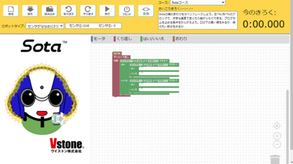 同プログラミング大会は小中学生を対象とし、専用のコースのクリアタイムを競うというもの。PCやタブレットなどからWebブラウザで「プログラムランド」にアクセスし、専用のコースである「Sotaコース」「レーシングコース」のどちらか、または両方をチャレンジし、できるだけ早くゴールできるプログラムを作成する。