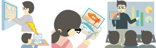 周囲に知られることなく情報活用が可能になるパーソナルな情報の提示(右側)