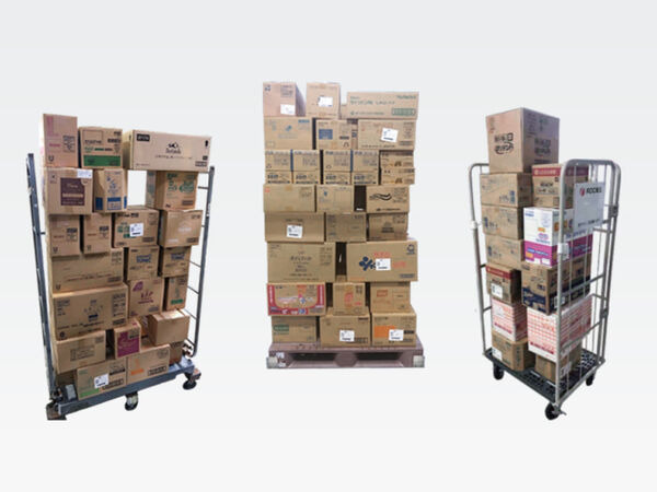 トラックや、生産現場などに移送する際の出荷什器は、それぞれの現場で必要とされている物資が混載されることになるが、その際に最適な什器や積み方を選択できないと無駄なスペースが生まれたり、荷崩れなどの危険なども発生するため、この時点での積付けパターンが作業効率や安全性を大きく左右する。