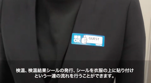 『TEMPOK』はサーモグラフィー機能搭載のタブレット(AIサーマル検知システム)とラベルシール・プリンターで構成される。セルフ式で非接触の検温を行い、設定した体表温度以下の場合のみ「検温OK」のラベルシールが発行される。ラベルシールを腕や胸などに衣類の上から貼ることで、正常な体表温度であることを可視化することができる。