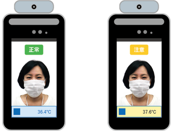 2.検知した体表温度が正常な場合は「正常」、基準値以上の場合は注意音が鳴り「注意」と表示される。