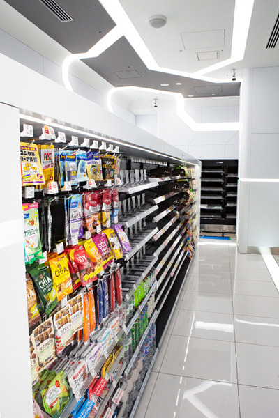 内覧会のツアーは1階から始まる。一階にあるのはコンビニのローソン。ここではTelexistence株式会社(テレイグジスタンス)の遠隔操作ロボット「Model-T」が商品棚の補充作業ま実証実験を行っている。・・はずだった。しかし、なんと実験は正式オープンから、ということでこの日はお休み。実機すら見られなかった。いきなりガッカリ。