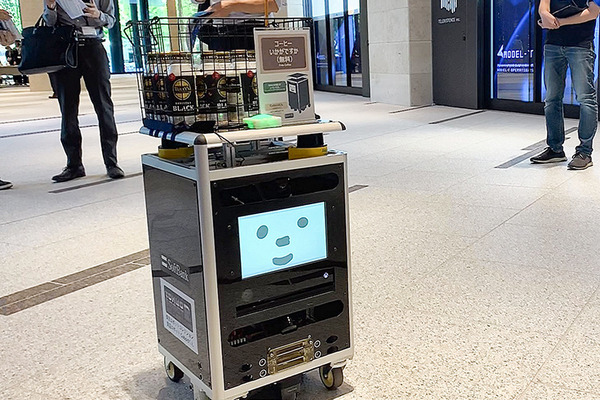 もちろんルート上に人や障害物を検知すれば自動で回避して走行を続ける。また、エレベータと連動してロボットだけでフロア間を移動する機能もある。自動充電機能があり、バッテリー残量が少なくなると自動で充電ステーションに収まって充電する。内覧会会場ではコーヒーを運搬して巡回し、無料配布していた。