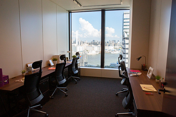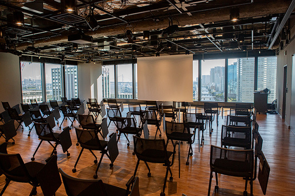 この階には東急不動産が運営している会員制シェアオフィス「Bussiness-Airport」がある。ここのテーマはテイクオフ。小規模で始めるシェアオフィスの会員たちが東京湾に向かってテイクオフしていくことをイメージして、床面には「滑走路灯」を模したライトが埋め込まれている。
